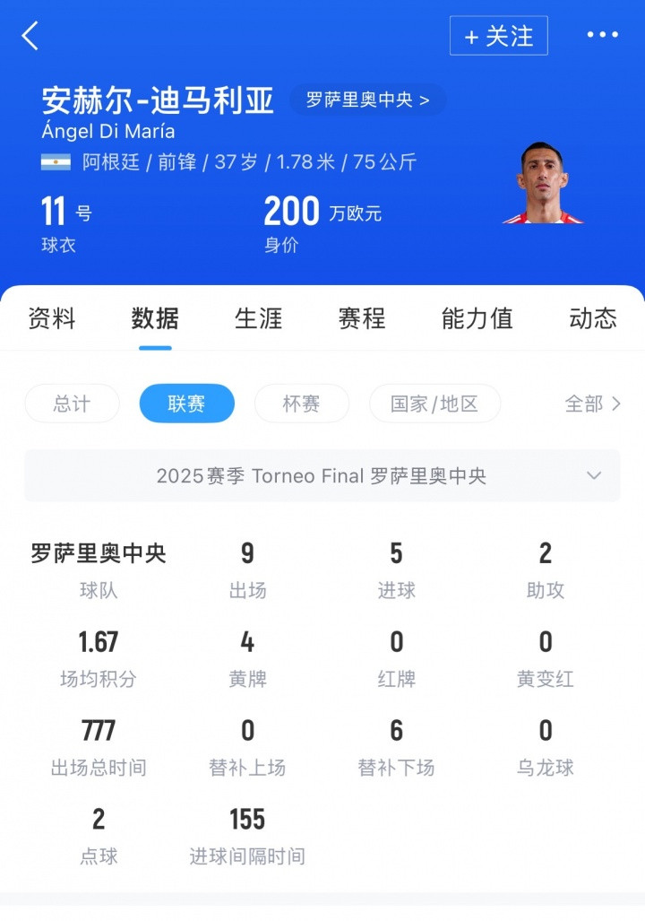 直播吧09月29日讯北京时间28日凌晨阿超比赛,罗萨里奥中央3-0战胜拉普拉塔体操,此役37岁迪马利亚首发登场,贡献1球1助。迪马利亚在比赛中丝滑假射真过后抽射破门,打入回归后第5球。